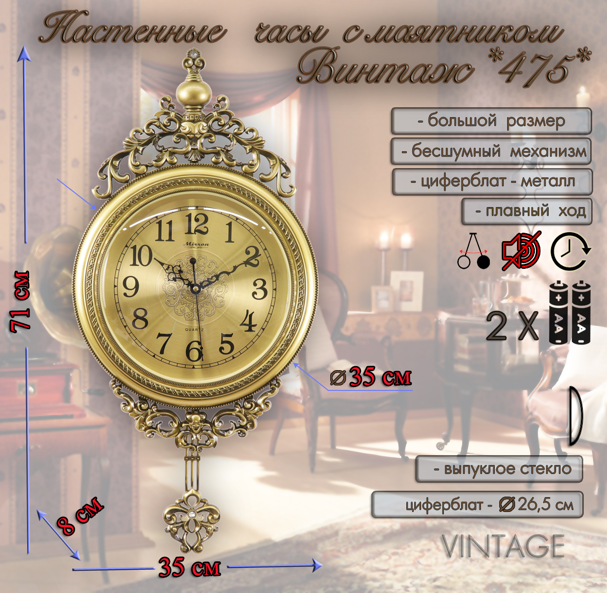 Большие настенные часы с маятником MIRRON FM475C ЗЗ станут отличным тематическим дополнением к декору вашей комнаты и подарят уют вашему дому.