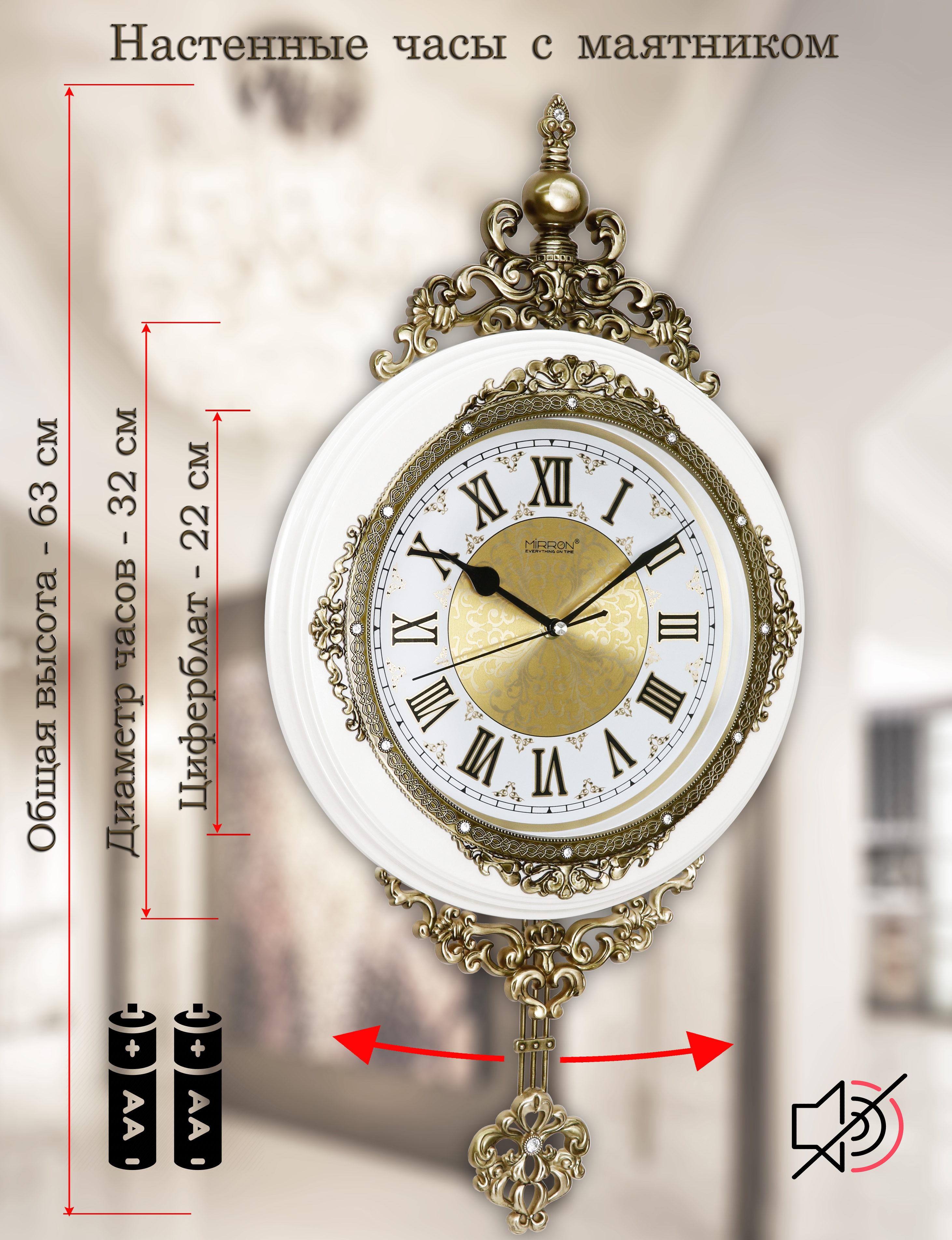 Укомплектованы кварцевым бесшумным механизмом плавного хода с низким энергопотреблением MIRRON №1.